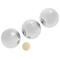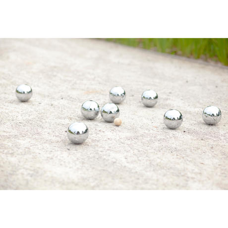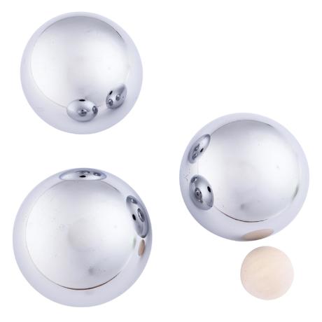 Steel chrome boules, weighted for playing on soft playing surface such as sand.